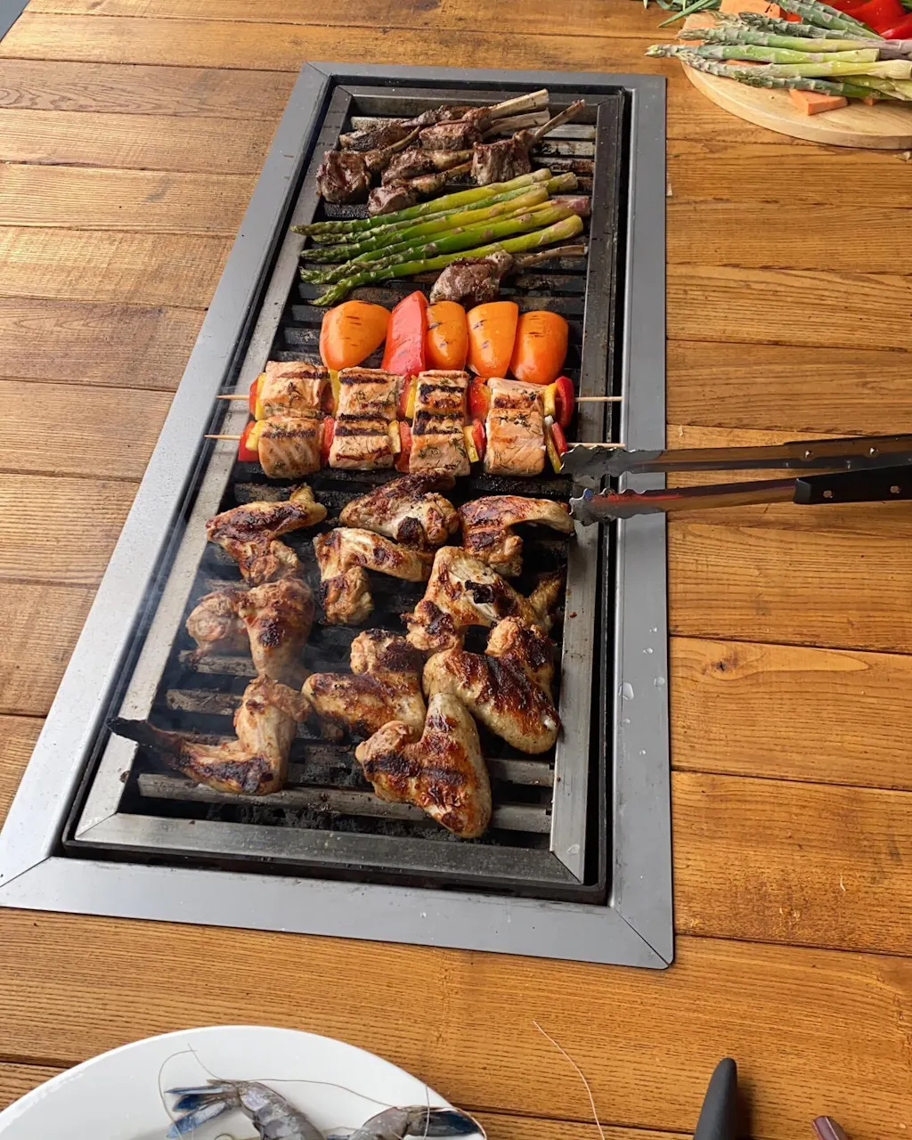 We have been cooking almost everything on this table! Also so glad that this is charcoal grill instead of prone, we have found that everything tastes just so much better on charcoal! I thought that there would be smoke everything while cooking, but what a pleasant surprise it was to get zero smoke while cooking.